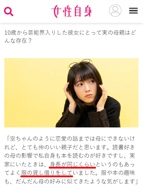 『2021年の『ウチの娘は、彼氏が出来ない!!』の頃のインタビューでは、「身長が同じくらいというのもあってよく服の貸し借りをして…」と浜辺美波さんは実の母のことを話していました。
