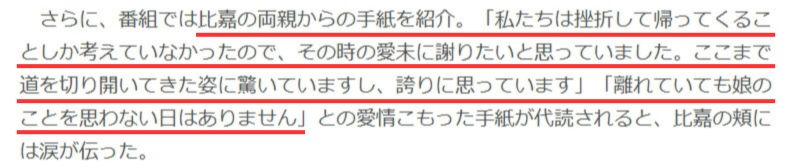 寡黙で優しい父親は挫折したときのことを思って芸能界入りを反対していたものの、現在の比嘉愛未さんの活躍ぶりを誇りに思っているとのことで、家族間の絆の強さが伝わります。