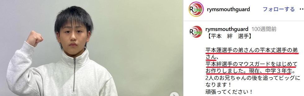 平本蓮さんの弟(三男)、平本絆(ひらもときずな)さんも兄たちと同じく格闘技を始めています。