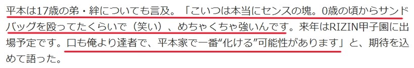 そんな平本蓮さんは、格闘技の出会いは父親がきっかけだったこと、父親がプロボクサーになれなかったこと、父親の変わりに夢を叶えたい・・・などの話を取材特集の記事で明かしていました。