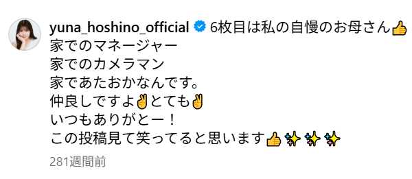 星乃夢奈さんと母親は一緒に住んでいるらしい、Instagram投稿はありました。