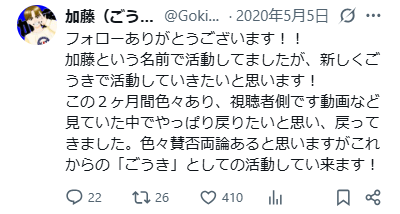 星乃夢奈さんの下の兄は、「加藤(ごうき)」と名乗って活動しています。