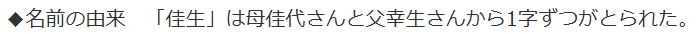「佳生」という名前は海外でも覚えてもらいやすいとのことで、本人も気に入っているんだそう。