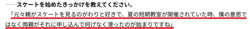4歳からスケートをはじめた三浦佳生選手ですが、そのきっかけは親が短期教室に申し込んだことでした。