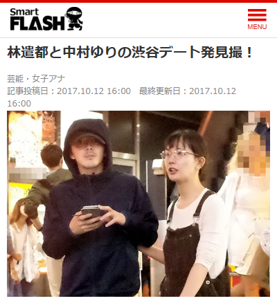 - 2017/10:『FLASH』が渋谷焼肉デートのツーショット撮(写真スクープ)。信ぴょう性:高。