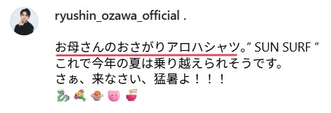 母親の服をおさがりでもらい、愛用していることから、小澤竜心さんは親子関係がとてもいいということがわかりますよね。