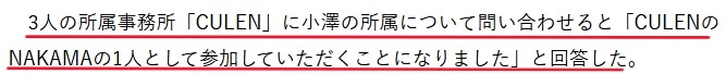 小澤竜心さんが現在所属する株式会社CULENは、元SMAPの稲垣吾郎さん、草彅剛さん、香取慎吾さんのために設立された芸能事務所です。