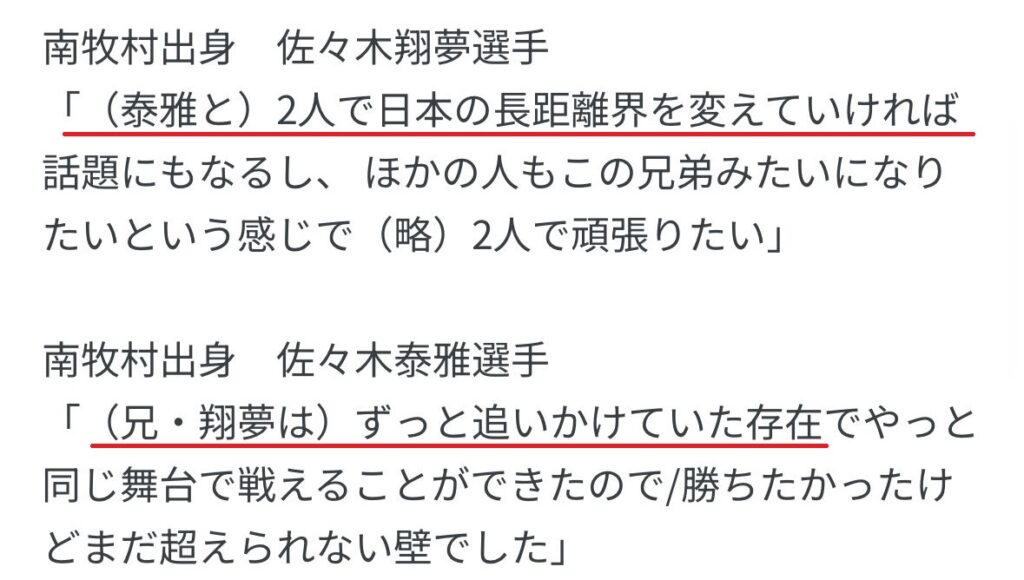 スピードスケートを盛り上げていくためにも兄弟で頑張りたいと語っていて、佐々木翔夢選手と泰雅選手の今後の活躍にますます注目が集まりそうですね。