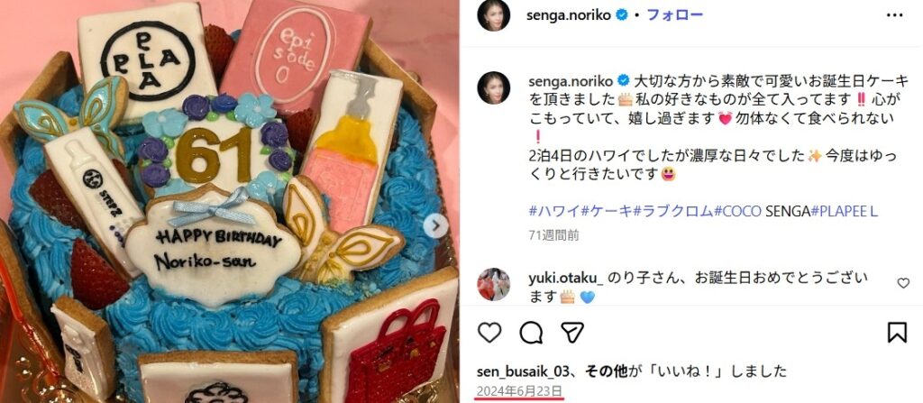 Instagramで、千賀のり子さんの仕事の2025年1月現在を確認。
