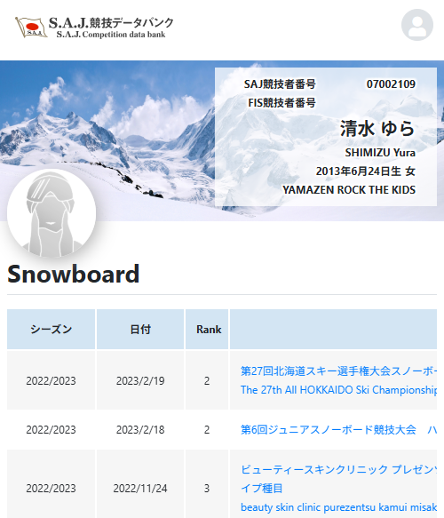全日本スキー連盟(SAJ)が管理する「競技者データバンク」にも正式に登録されていることも確認できました。