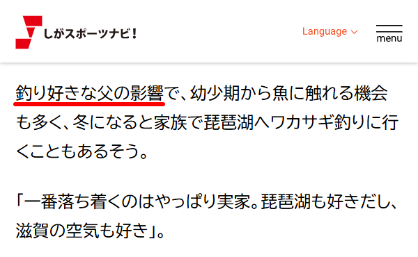 スノーボードの他にも父親に影響を受けた話として、出身地滋賀県の琵琶湖へワカサギ釣りに行くこともあるというエピソードもあります。