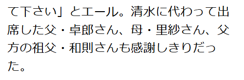 清水さらさんの父親の名前は、父・卓郎さん。