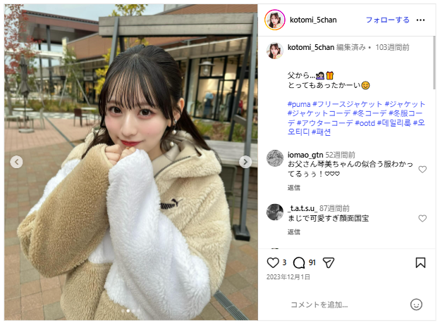 ファンらしきフォロワーさんから、「お父さん琴美ちゃんの似合う服わかってるぅぅ!」と称賛されていますね。