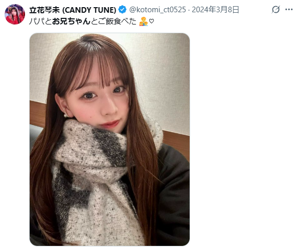 立花琴未さんのX投稿で、立花琴未さんに兄がいることを確認できました。