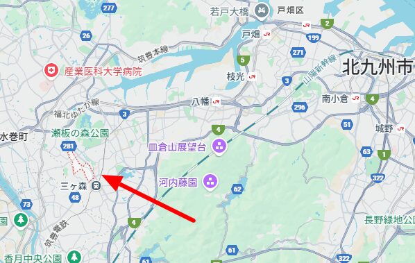 八幡西区永犬丸は、地図の矢印の先にあるエリアになります。