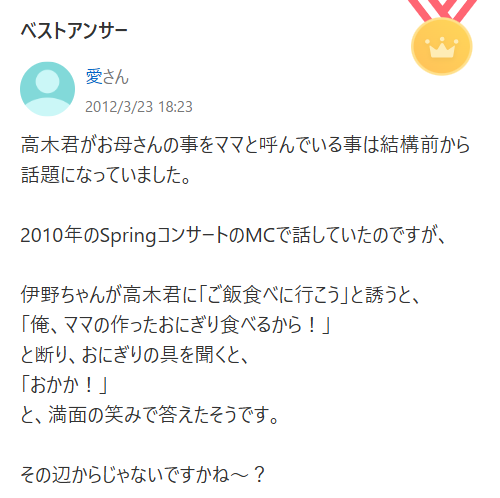- 高木雄也は母親をママと呼ぶキャラが定着