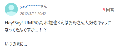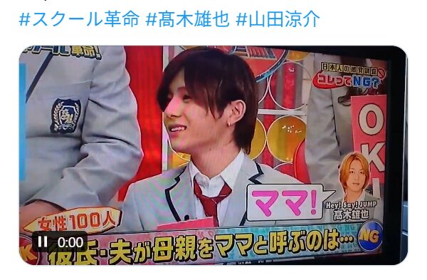 高木雄也さんの母親をママ呼びしていることは、「Hey! Say! JUMP」ファンの間では知られています。