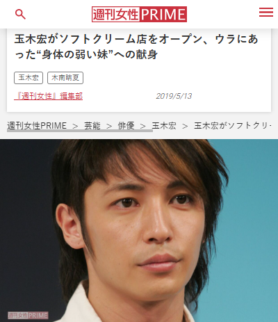 「週刊女性PRIME」の記事で、玉木宏さんの妹のソフトクリーム店の話題が取り上げられていました。