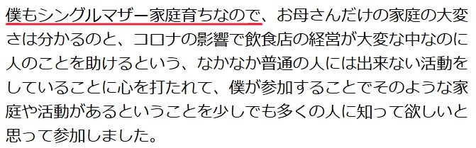 そのとき、「母子家庭で育った手越祐也さん」はスペシャルサポーターに就任しています。